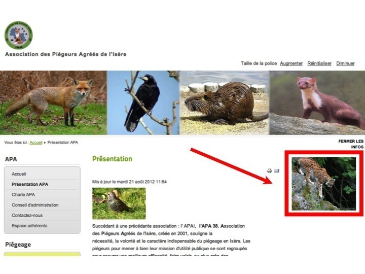 En Isère le site internet de l’association des piégeurs (http://apa38.fr) présente une carte de France montrant qu’en Corse il n’y a pas d’espèces nuisibles et des photos de plusieurs espèces protégées (lynx, chat sauvage, genette).