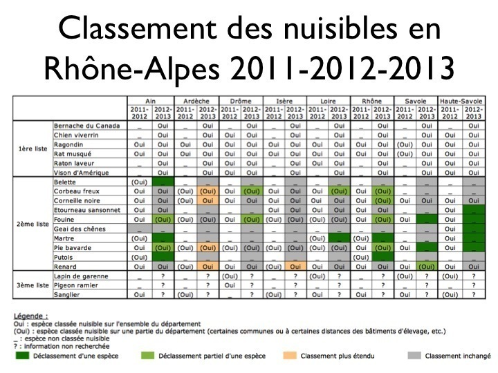 Retrouvez le contenu de la conférence "le classement des nuisibles est-il une solution ?" donnée le 22 mars 2013 lors du colloque sur la prédation de la Frapna.